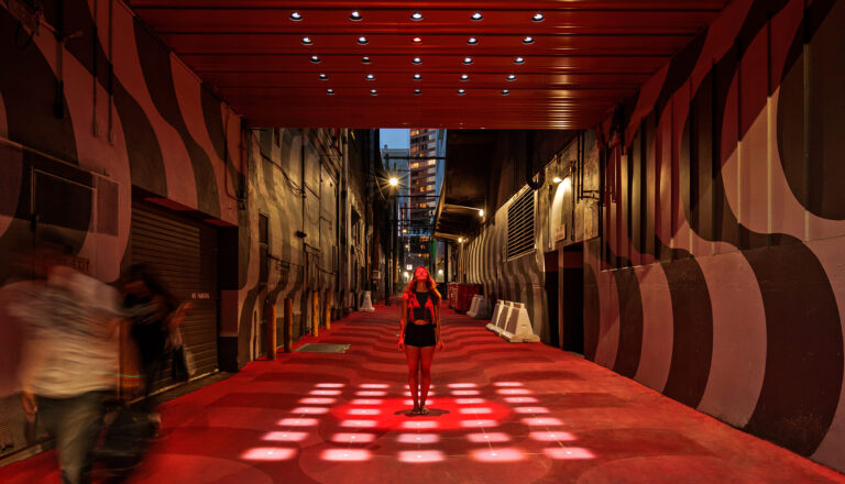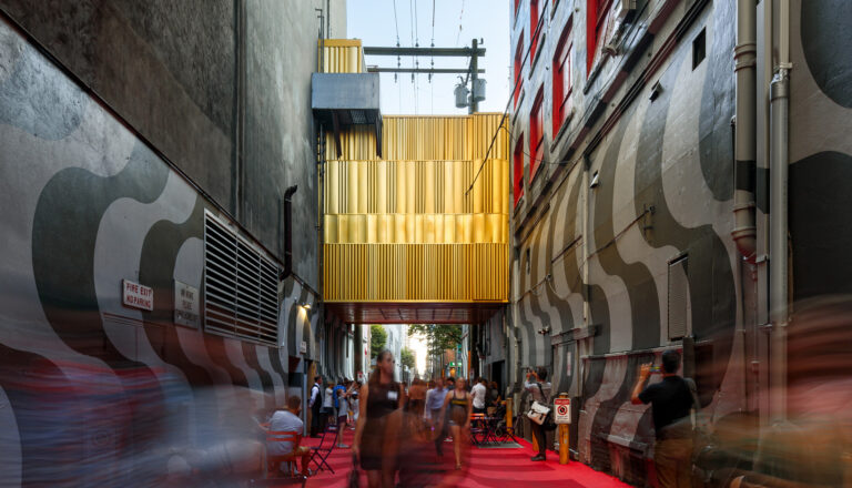 How do you take an unused, unattractive space and make it into a hip, vibrant community asset? Design a wall system in which each panel has its own light, thanks to six different panel profiles and a lighting feature that interacts with people as they move through the alleyway.