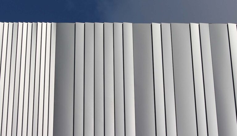 This project is an excellent example of four simple panel profiles playing with shadow to make a wall appear dynamic. Changes in time of day and angle of view make the facade look ever-changing and fluid. LKMe’s design flexibility allowed these brake-formed panel profiles to be produced in a budget-friendly manner.