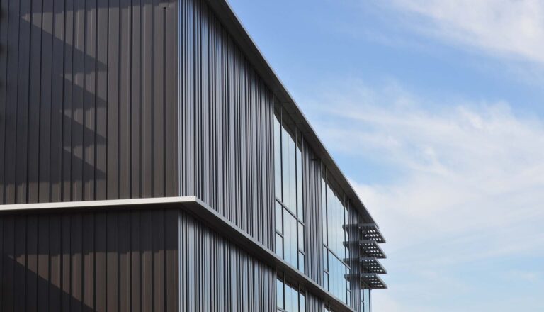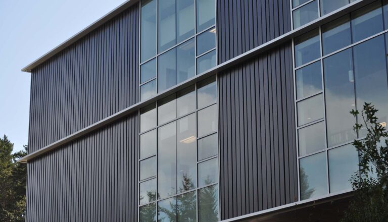 Camosun College’s Alex & Jo Campbell Centre for Health and Wellness is a beautifully modern space designed to foster collaboration and promote learning. In this project, LKme panels are uniquely integrated with both the window system and custom integral corner panels, allowing the designers to achieve a crisp look for the final exterior envelope. By using brake-formed panels with multiple panel depths, they could layer simple profiles to give the walls a textured appearance. The result is a sleek, elegant building that achieves aesthetic appeal while meeting the client’s budget.