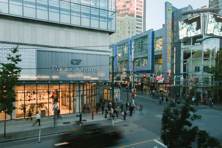 Provide a modern, shimmering background for key Pacific Centre signage.